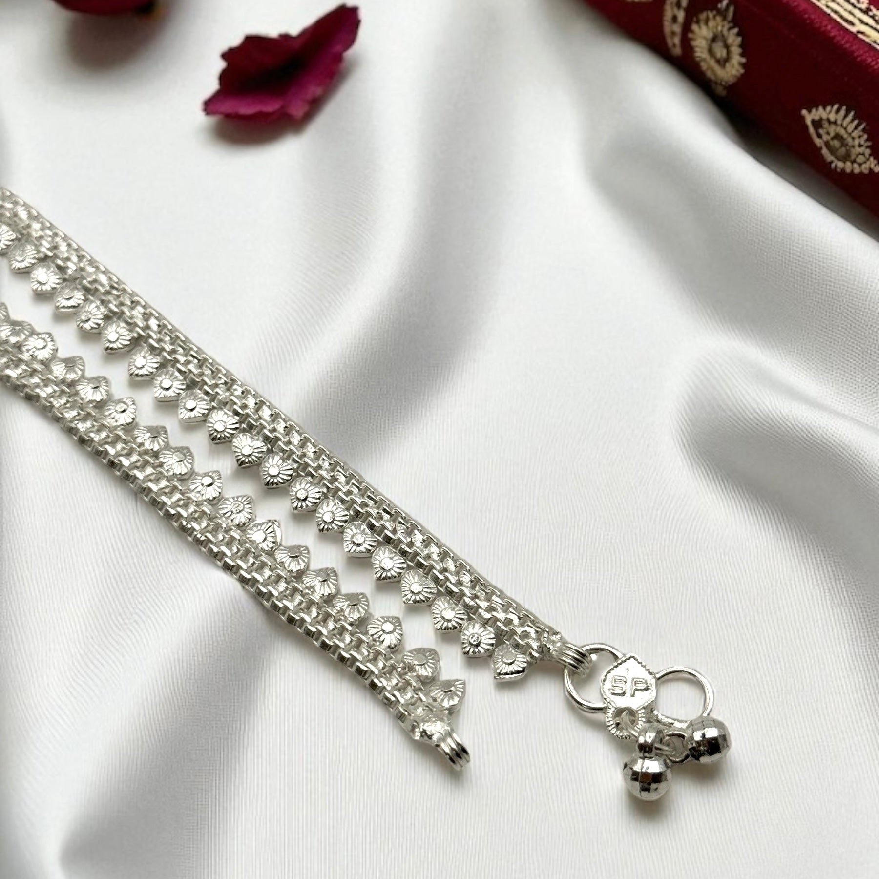 Leafy Textured Silver anklet.